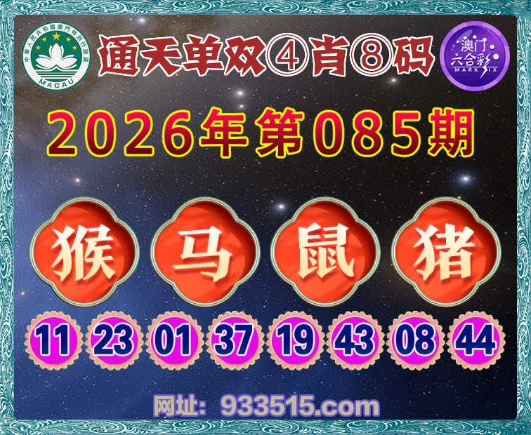 085期:『通天单双』 🏆④肖⑧码🏆【猴马猪】开:鼠19