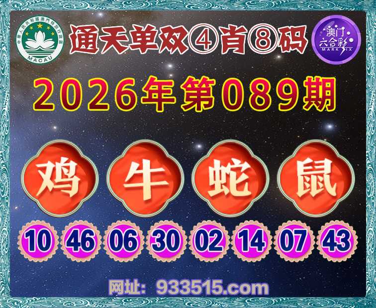 089期:『通天单双』 🏆④肖⑧码🏆【鸡牛蛇鼠】开:马49