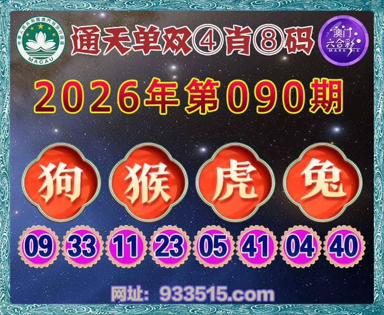 090期:『通天单双』 🏆④肖⑧码🏆【狗猴虎兔】开:00准